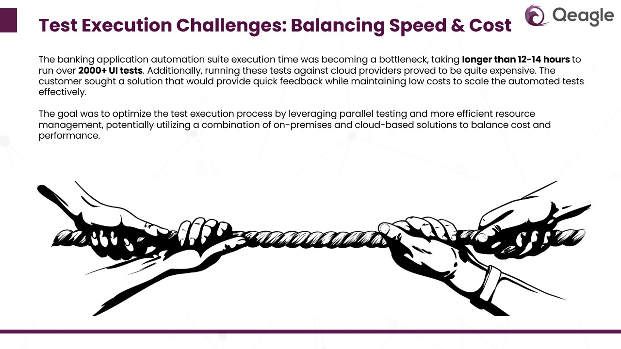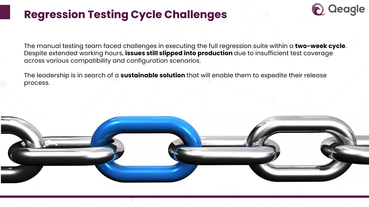 Qeagle, a trusted partner in enterprise quality engineering, faced a common yet critical challenge in its internal and client projects—long and unstable regression testing cycles. With increasing application complexity and fast-paced agile releases, regression cycles became a bottleneck in ensuring on-time, high-quality releases.